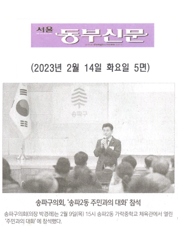송파구의회, ‘송파2동 주민과의 대화’ 참석[서울 동부신문] | |||||